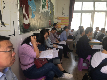 最后,杨道想老师做总结性发言,肯定了两位上课老师的表现,课堂活动能较好地体现学为中心、有效学习的课改理念,并指出课堂教学尤其要关注学生的学习现状,只有基于学生学习现状的教学,我们课堂教学的出发点和落脚点才是接地气的,课堂才会是有效的。同时,杨老师就教材处理、概念学习、活动方式、试题命制及交流等方面提出了意见,并就学员编制双向细目表和命制一份化学试卷进行了部署。