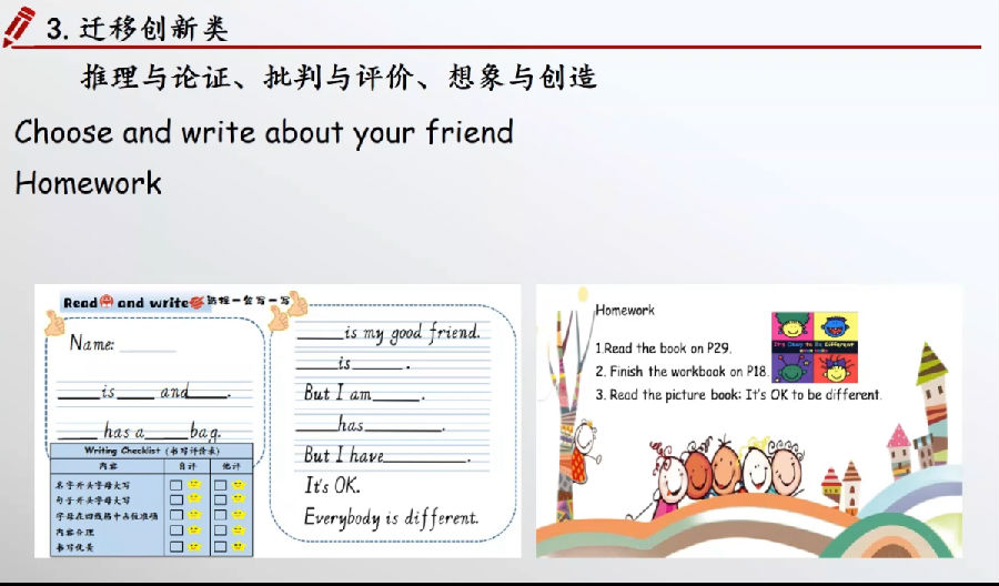 第一节课PEP3 Unit 3 Read and write,由平阳县鳌江小学颜小映老师执教,平阳县水头第四小学潘秀秀老师进行设计阐释。本课借用文本语篇创设新的语篇Who are good friends?通过描述与阐释、分析与判断、创造与想象使学生深刻感知本课的主题意义。