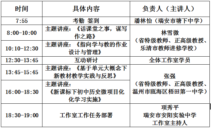 为了发挥名师工作室的示范引领作用,进一步深化新课程标准理念,促进瑞安文成两县道德与法治学科教师的专业成长,经研究,决定举办温州市项秀平送教名师工作室5次活动。现将具体事项通知如下: