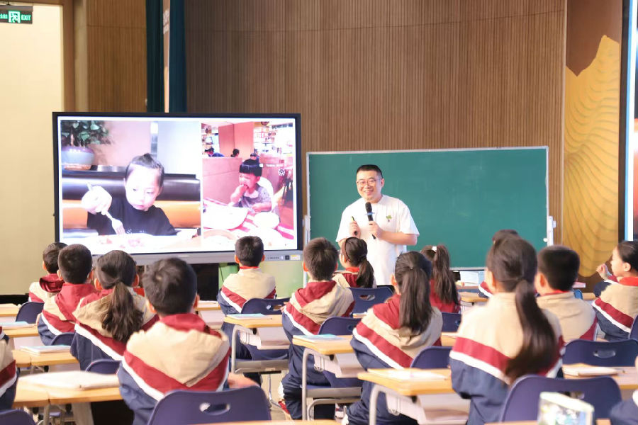 本次活动在温州慧中公学刘远谨老师与 403 班同学们带来的《食物的营养》一课中拉开帷幕。刘老师精心设计教学环节,引导学生经历 “检测 - 比对 - 坚定 - 查阅资料” 的完整探究过程。课堂上,学生们分组协作,通过实验检测食物中的营养成分,随后将检测结果进行比对分析,在不断的讨论与验证中坚定自己的观点,最后借助查阅资料完善认知。这样层层递进的活动设计,不仅让学生构建起系统的知识框架,更有效提升了课堂学习的逻辑性与完整性,充分体现了以学生为主体的教学理念。